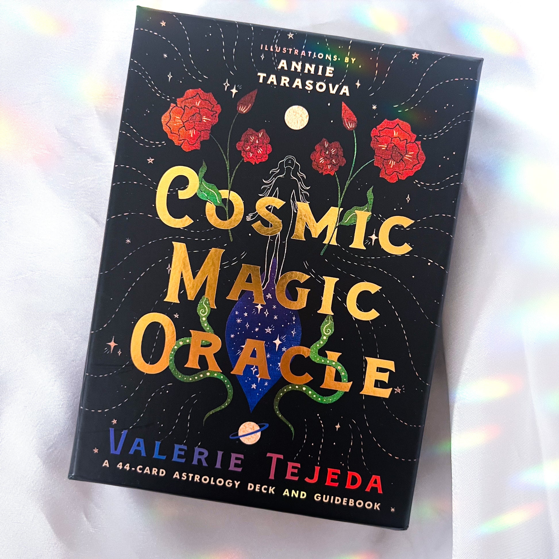 Cosmic Magic Oracle is 44-card astrology deck and guidebook by Valerie Tejeda, featuring artwork by Annie Tarasova (Dreamy Moons).